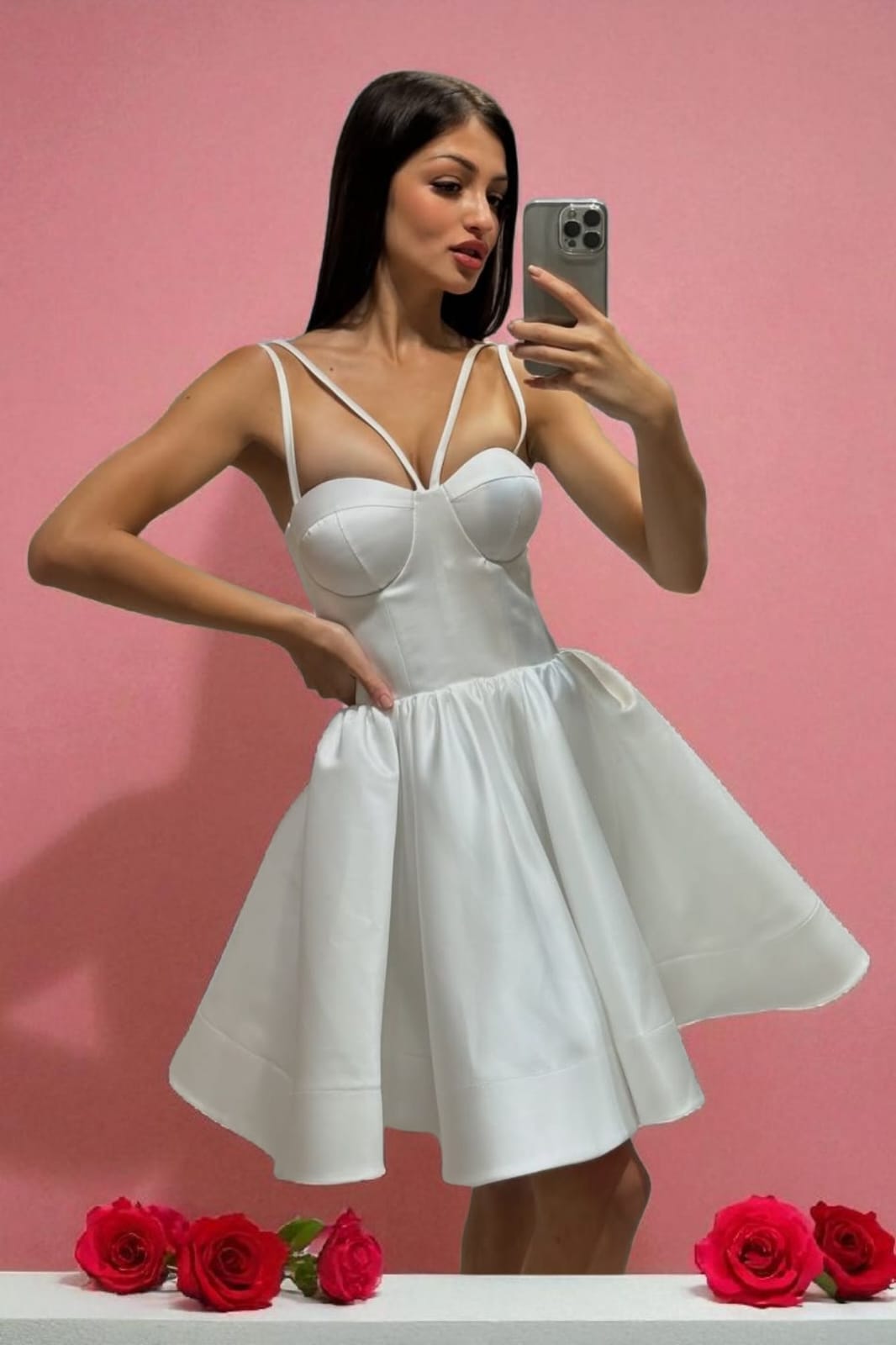 Jeune, fraîche et ultra-stylée, cette robe combine un corset structuré et une jupe aérienne pour une allure irrésistible. Un choix parfait pour la mairie, le brunch du lendemain ou une fête de fiançailles.
