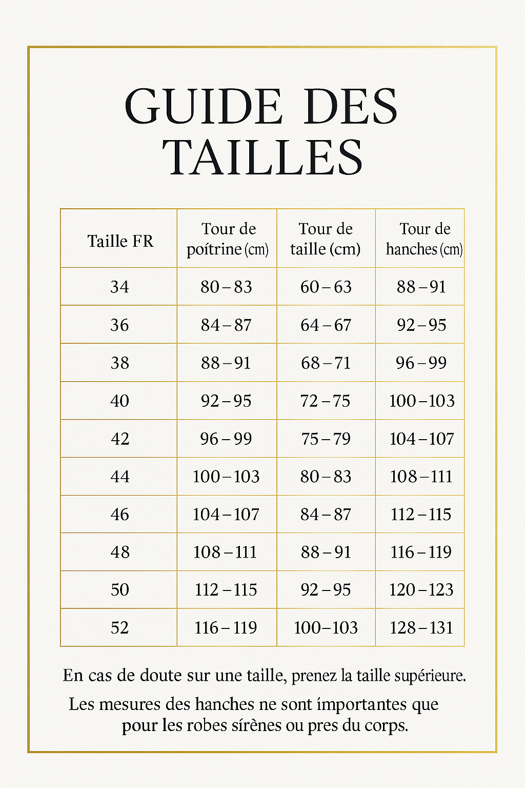 | taille | 32, 34, 36, 38, 40, 42, 44, 46, 48, 50 |