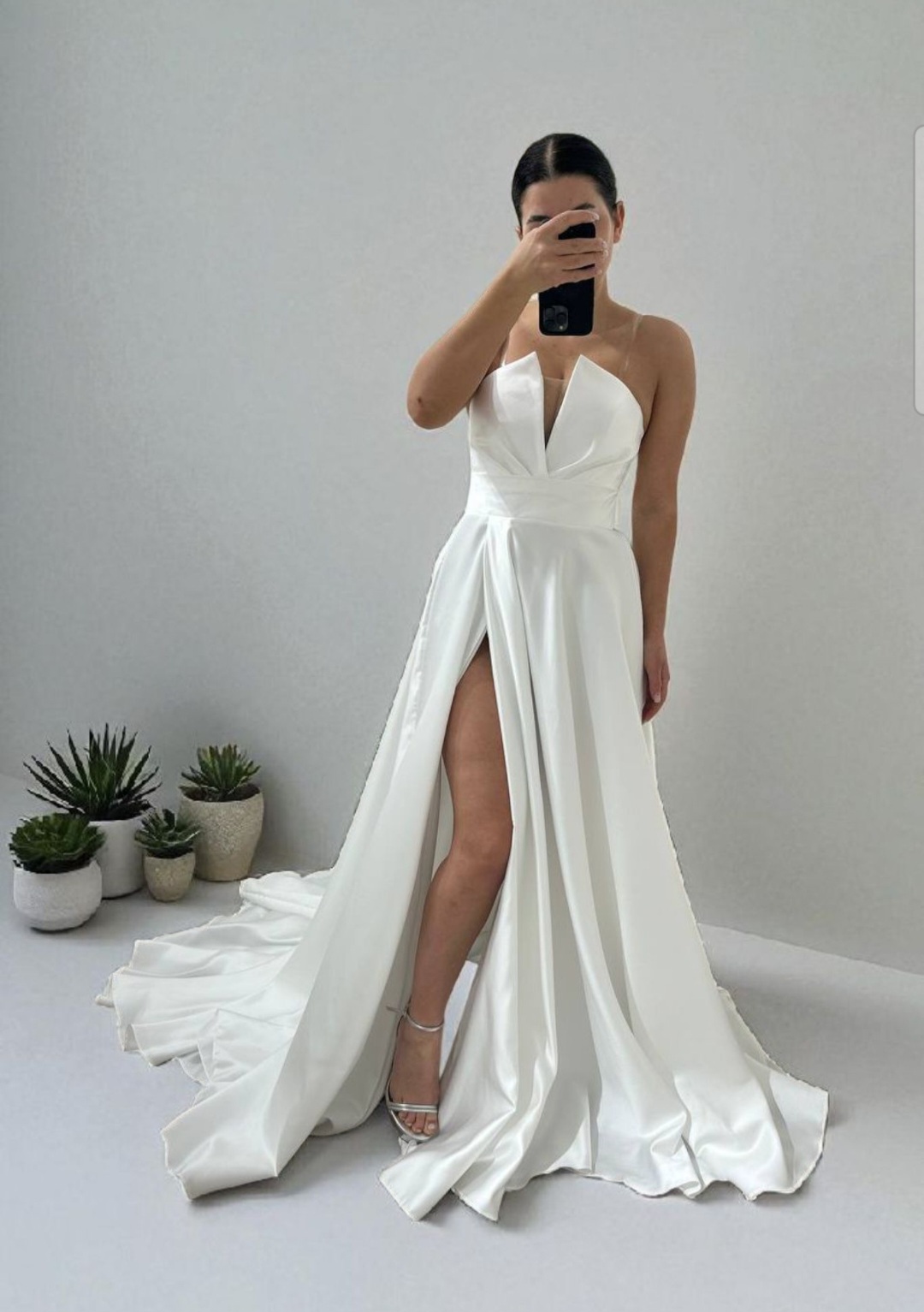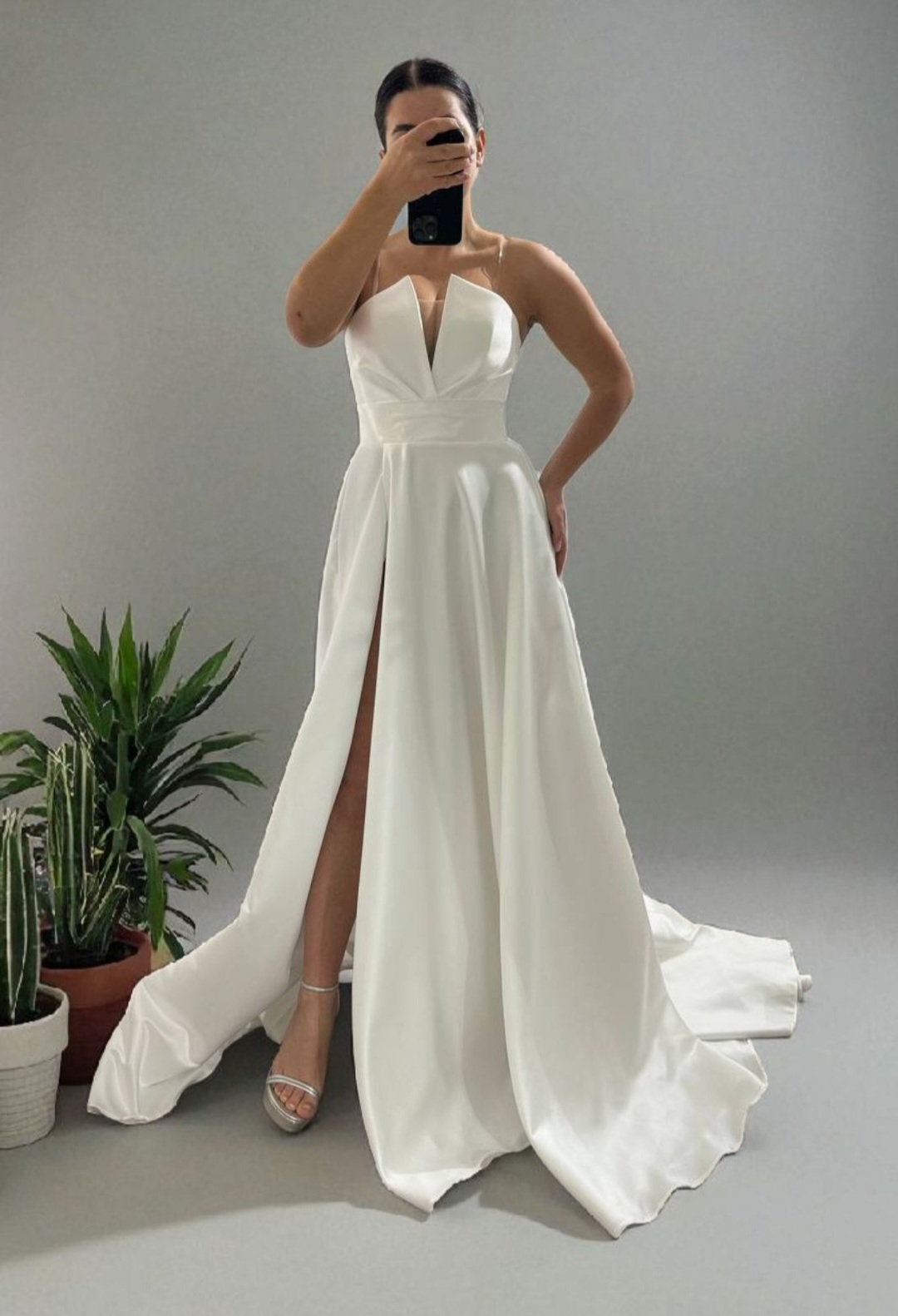 Robe de mariée satinée au décolleté profond